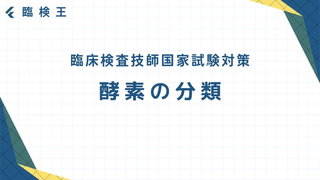 過去問を解いてみよう! では実際に過去10年分の国家試験(第62~71回臨床検査技師国家試験)から酵素の分類について出題された問題を3問解いてみよう! 出典:厚生労働省ホームページ第68回臨床検査技師国家試験問題および正答についてhttps://www.mhlw.go... 臨床化学