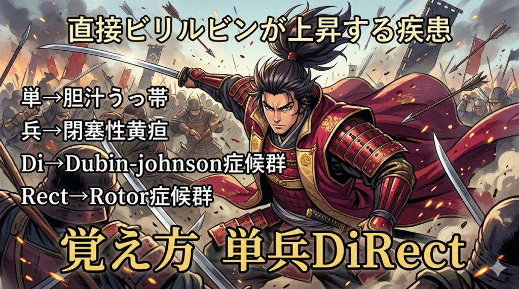 直接ビリルビンが上昇する疾患の覚え方(ゴロ)【単兵DiRect】