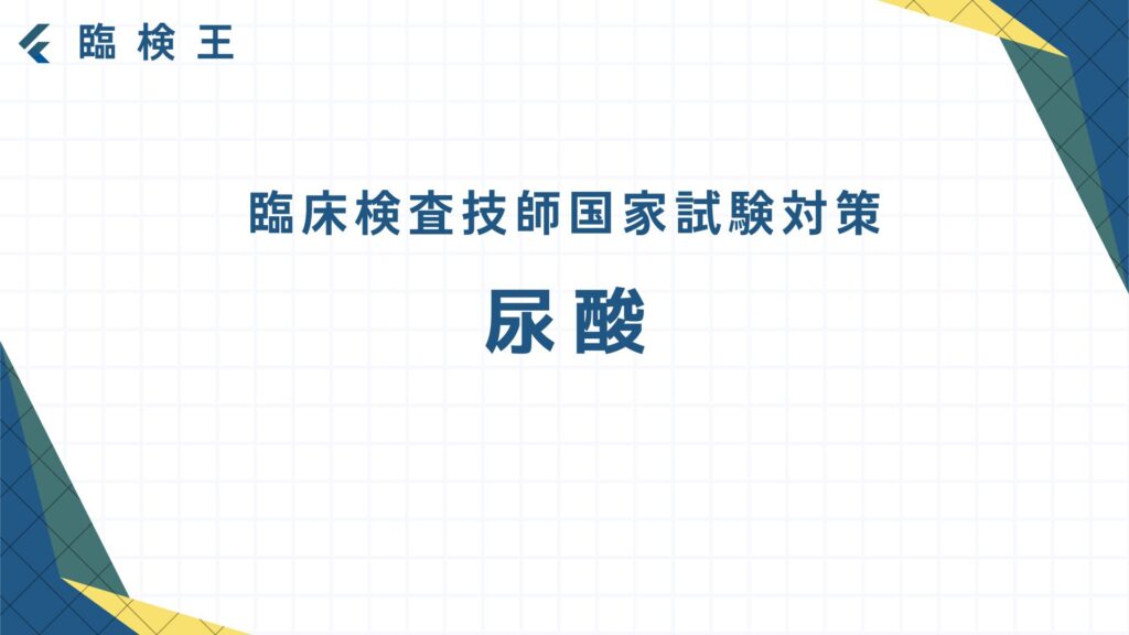 過去問を解いてみよう! では実際に過去10年分の国家試験(第62~71回臨床検査技師国家試験)から尿酸について出題された問題を5問解いてみよう! 出典:厚生労働省ホームページ第65回臨床検査技師国家試験問題および正答についてhttps://www.mhlw.go.jp/se... -