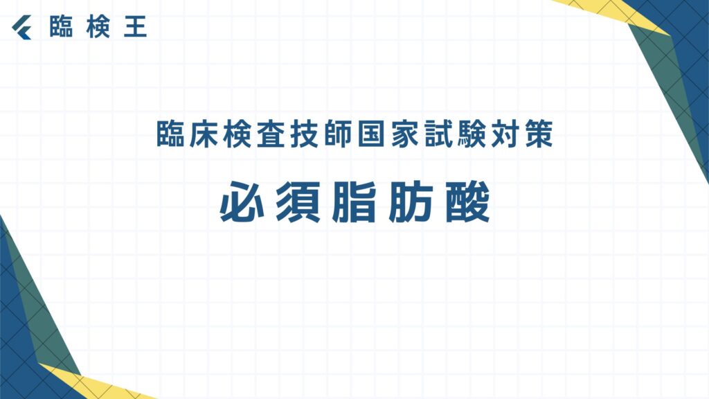 過去問を解いてみよう! では実際に過去10年分の国家試験(第62~71回臨床検査技師国家試験)から必須脂肪酸について出題された問題を1問解いてみよう! 出典:厚生労働省ホームページ第71回臨床検査技師国家試験問題および正答についてhttps://www.mhlw.go... -