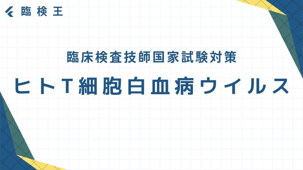 過去問を解いてみよう! では実際に過去10年分の国家試験(第62~71回臨床検査技師国家試験)からヒトT細胞白血病ウイルスについて出題された問題を1問解いてみよう! 出典:厚生労働省ホームページ第71回臨床検査技師国家試験問題および正答についてhttps:... -