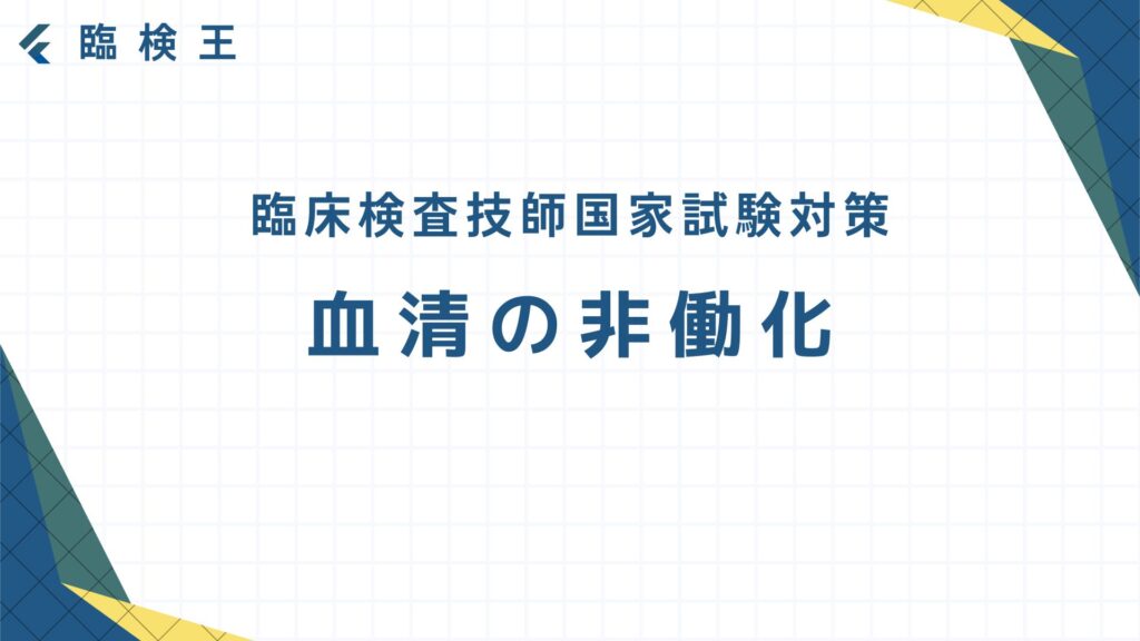 過去問を解いてみよう! では実際に過去10年分の国家試験(第62~71回臨床検査技師国家試験)から血清の非働化について出題された問題を1問解いてみよう! 出典:厚生労働省ホームページ第71回臨床検査技師国家試験問題および正答についてhttps://www.mhlw.... -