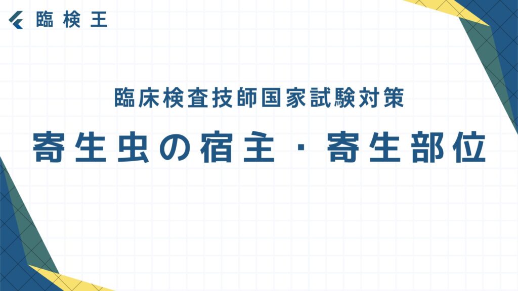 過去問を解いてみよう! では実際に過去10年分の国家試験(第62~71回臨床検査技師国家試験)から寄生虫の宿主・寄生部位について出題された問題を7問解いてみよう! 出典:厚生労働省ホームページ第63回臨床検査技師国家試験問題および正答についてhttps:/... -