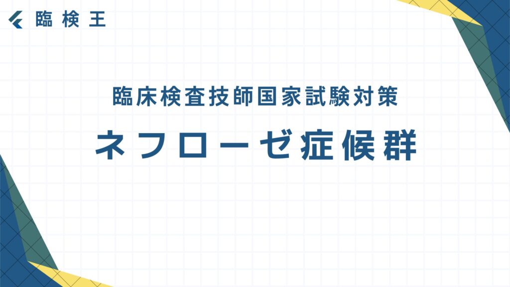 過去問を解いてみよう! では実際に過去10年分の国家試験(第62~71回臨床検査技師国家試験)からネフローゼ症候群について出題された問題を2問解いてみよう! 出典:厚生労働省ホームページ第63回臨床検査技師国家試験問題および正答についてhttps://www.m... -
