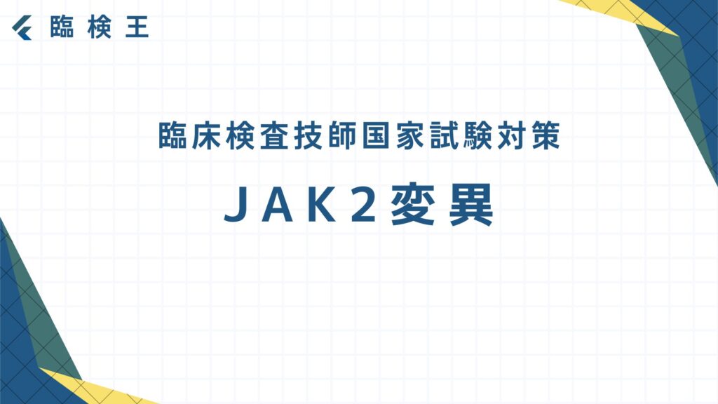過去問を解いてみよう! では実際に過去10年分の国家試験(第62~71回臨床検査技師国家試験)からJAK2変異について出題された問題を4問解いてみよう! 出典:厚生労働省ホームページ第62回臨床検査技師国家試験の問題および正答についてhttps://www.mhlw.go... -
