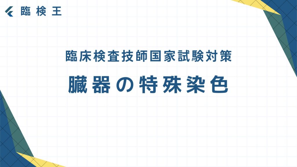 過去問を解いてみよう! では実際に過去10年分の国家試験(第62~71回臨床検査技師国家試験)から臓器の特殊染色について出題された問題を8問解いてみよう! 出典:厚生労働省ホームページ第63回臨床検査技師国家試験問題および正答についてhttps://www.mhl... -
