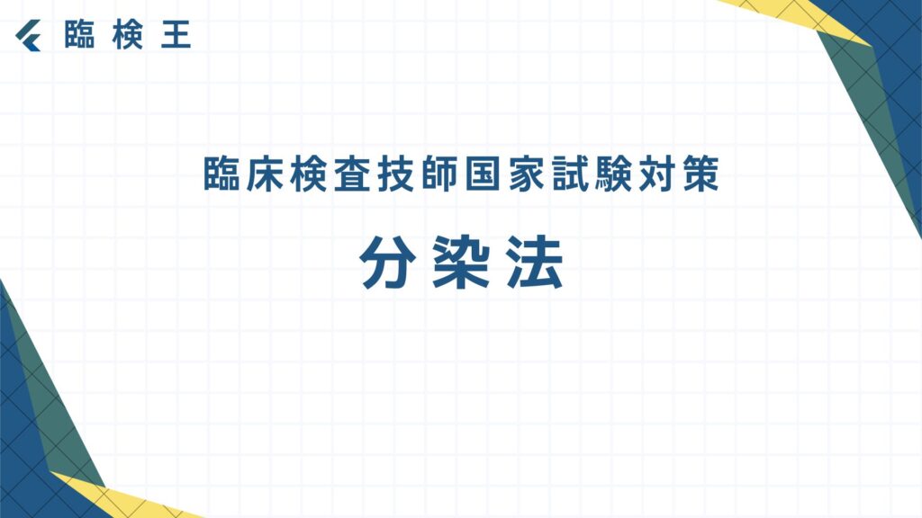 過去問を解いてみよう! では実際に過去10年分の国家試験(第62~71回臨床検査技師国家試験)から分染法について出題された問題を3問解いてみよう! 出典:厚生労働省ホームページ第65回臨床検査技師国家試験問題および正答についてhttps://www.mhlw.go.jp/...