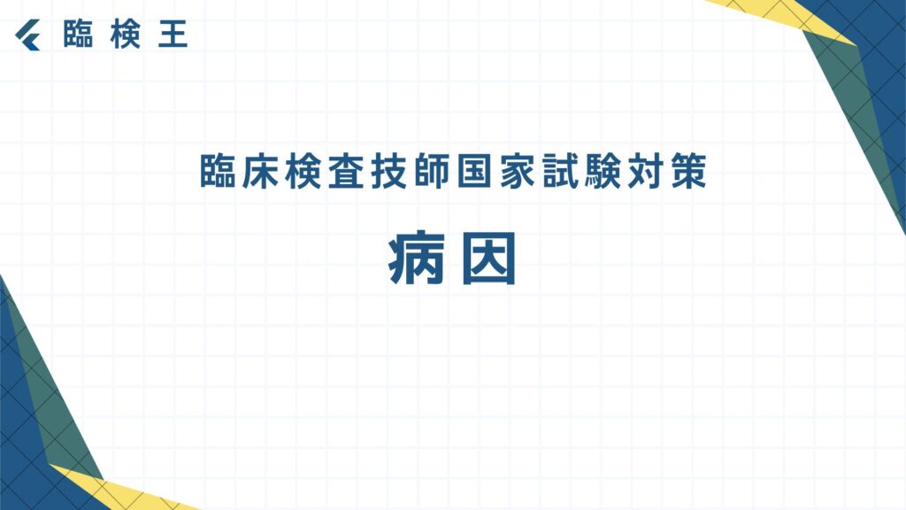 過去問を解いてみよう! では実際に過去10年分の国家試験(第62~71回臨床検査技師国家試験)から病因について出題された問題を2問解いてみよう! 出典:厚生労働省ホームページ第65回臨床検査技師国家試験問題および正答についてhttps://www.mhlw.go.jp/se... -