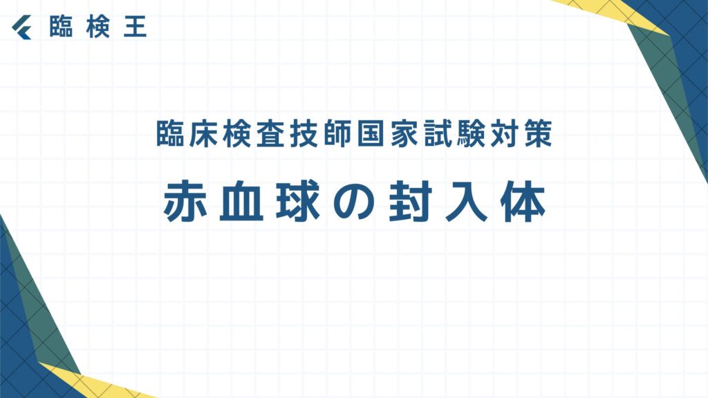 過去問を解いてみよう! では実際に過去10年分の国家試験(第62~71回臨床検査技師国家試験)から赤血球の封入体について出題された問題を3問解いてみよう! 出典:厚生労働省ホームページ第64回臨床検査技師国家試験問題および正答についてhttps://www.... -