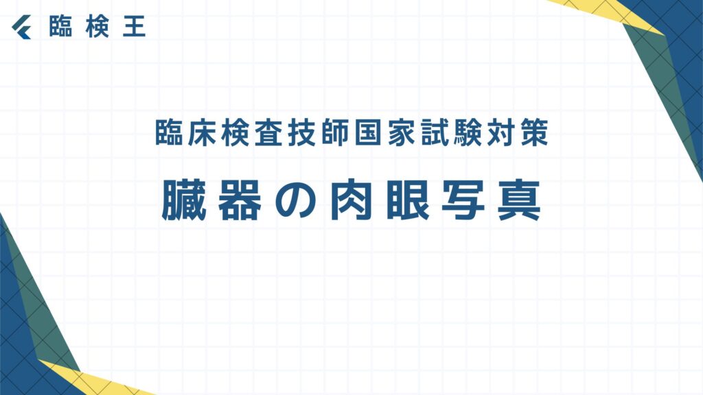 過去問を解いてみよう! では実際に過去10年分の国家試験(第62~71回臨床検査技師国家試験)から臓器の肉眼写真について出題された問題を5問解いてみよう! 出典:厚生労働省ホームページ第62回臨床検査技師国家試験の問題および正答についてhttps://www.m... -
